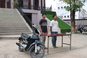ភ្លាមៗនោះ កម្លាំងមូលដ្ឋានកងរាជអាវុធហត្ថក្រុងប៉ោយប៉ែត ចុះដល់កន្លែងកើតហេតុ បានធ្វើការឃាត់ខ្លួនបានចំនួន០២នាក់ ១-ឈ្មោះ ខ្លម វិចិត្រ ភេទប្រុស អាយុ ២០ឆ្នាំ, ២-ឈ្មោះ មុំ រ៉ាម៉ៅ ភេទប្រុស អាយុ ១៨ឆ្នាំ ព្រមទាំងចាប់យកវត្ថុតាងកាំបិតខ្វែវដងឈើ ប្រវែង ៩៥សង់ទីម៉ែត្រ ចំនួន០១ដើម និងម៉ូតូ០១គ្រឿង ហើយនាំមកមូលដ្ឋានក្រុង ដើម្បីសួរនាំ និងចាត់ការតាមនីតិវិធី ។